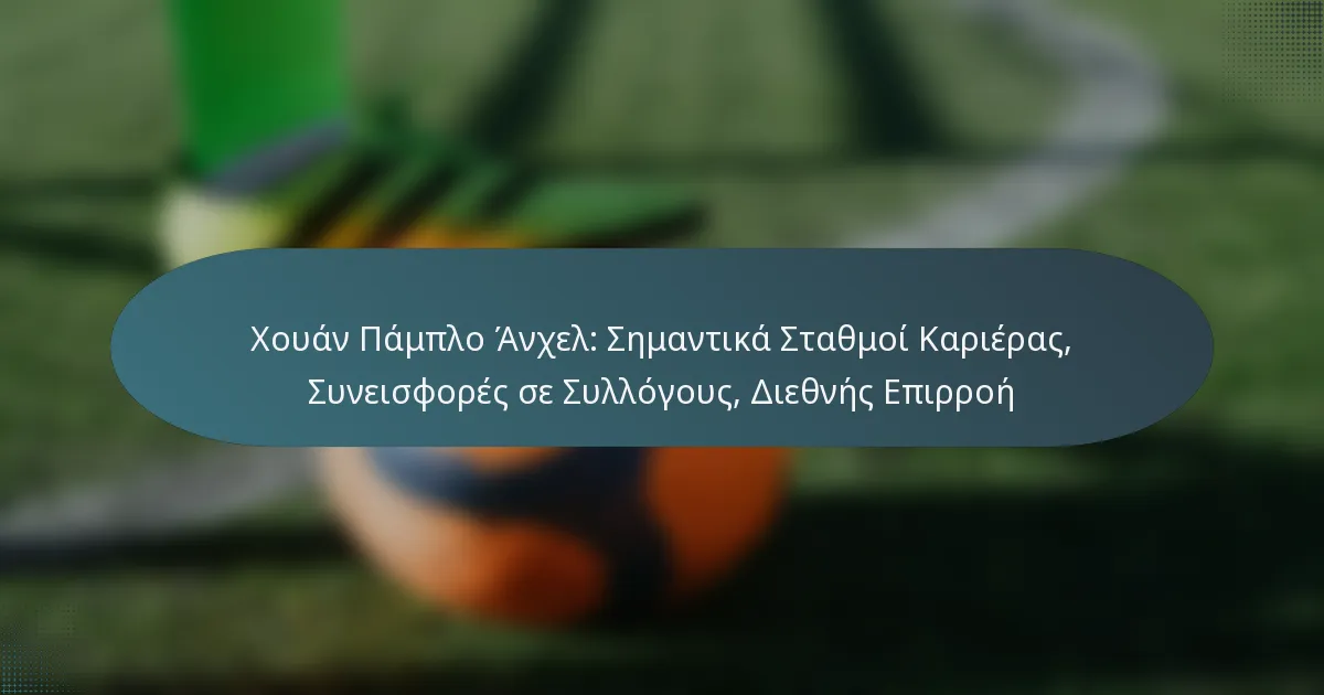 Ο Χουάν Πάμπλο Άνχελ αναγνωρίζεται για τις σημαντικές συνεισφορές του στο ποδόσφαιρο, που χαρακτηρίζονται από αξιοσημείωτα επιτεύγματα καθ’ όλη τη διάρκεια της καριέρας του. Το ταξίδι του περιλαμβάνει ένα επαγγελματικό ντεμπούτο, σημαντικές μεταγραφές σε ομάδες, πολυάριθμα βραβεία και μια διαρκή επίδραση στο διεθνές ποδόσφαιρο.